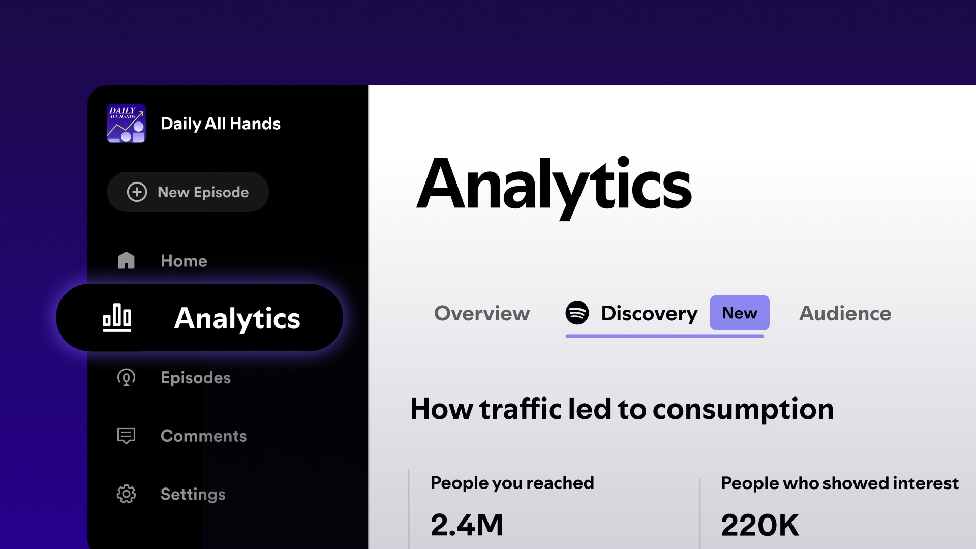 After distributing and posting your shareable links, make sure to review their performance by heading to the Discovery tab of your show or episode analytics.