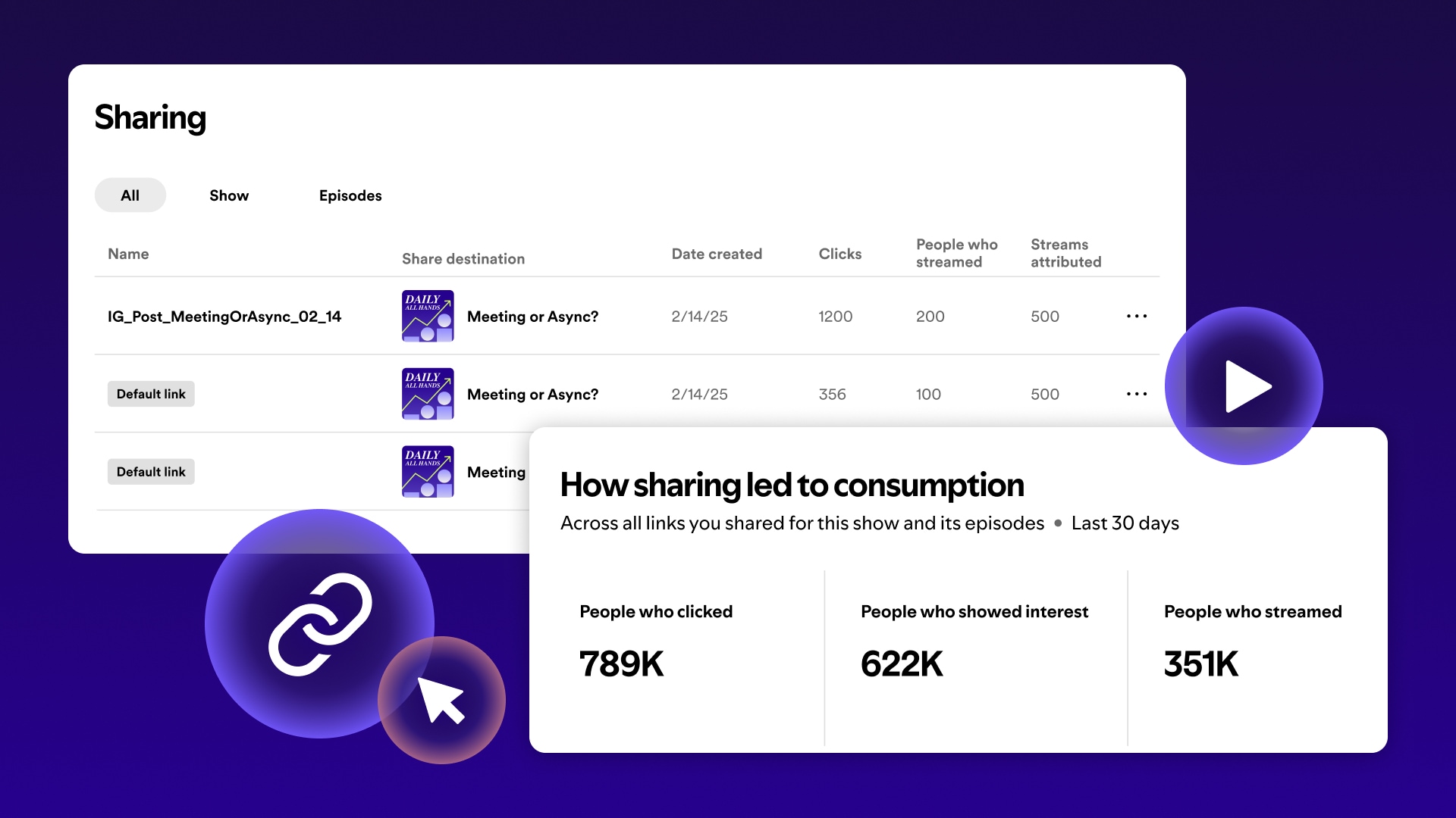 Sharing a link to your show page or latest episode is second nature for every creator and the simplest way for you to get the word out about your podcast. However, it’s historically been hard to know how sharing translates into more streams of your show.
