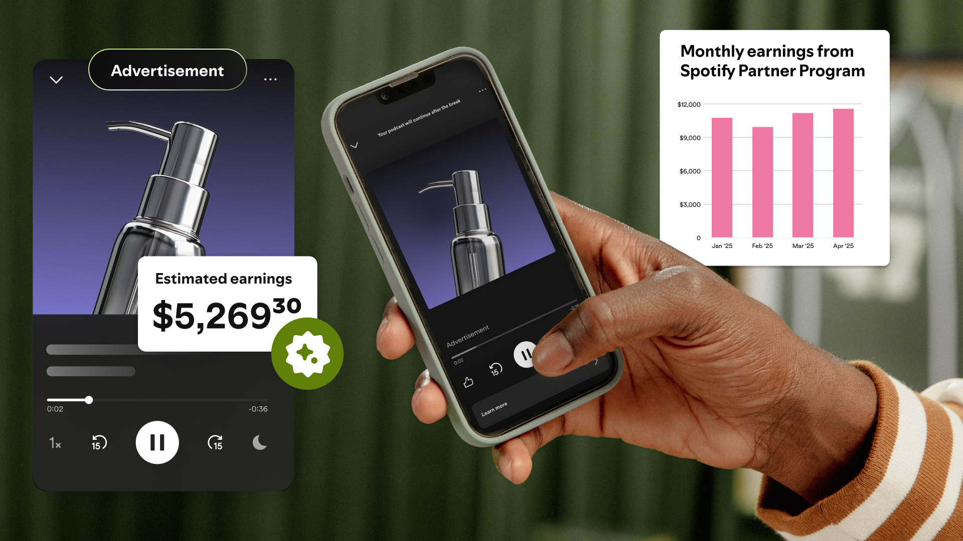 Earn with ads. Spotify works directly with thousands of global advertisers. Ads are targeted to your show's audience and optimize delivery so your audience is served the right message, at the right time.