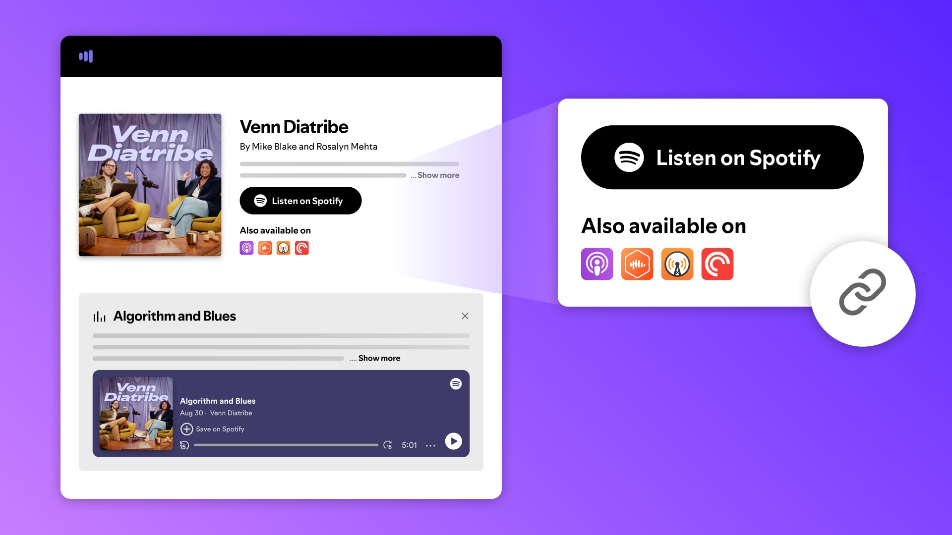 Effectively promoting your show starts with sharing links to your show’s episodes across social media, newsletters, and paid advertising campaigns. It’s one of the simplest ways to grow an audience.